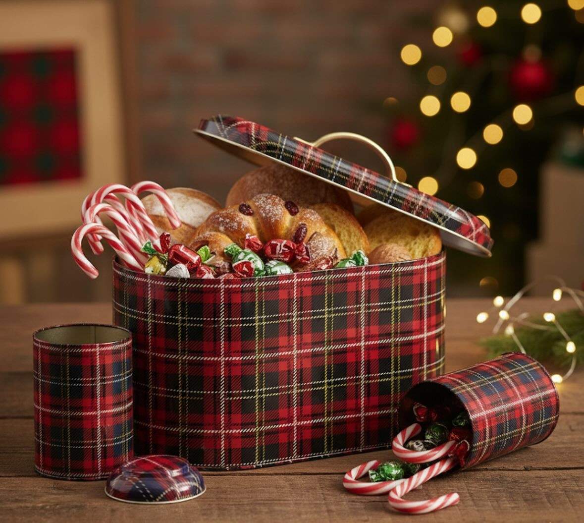 - Plaid-patterned boxes