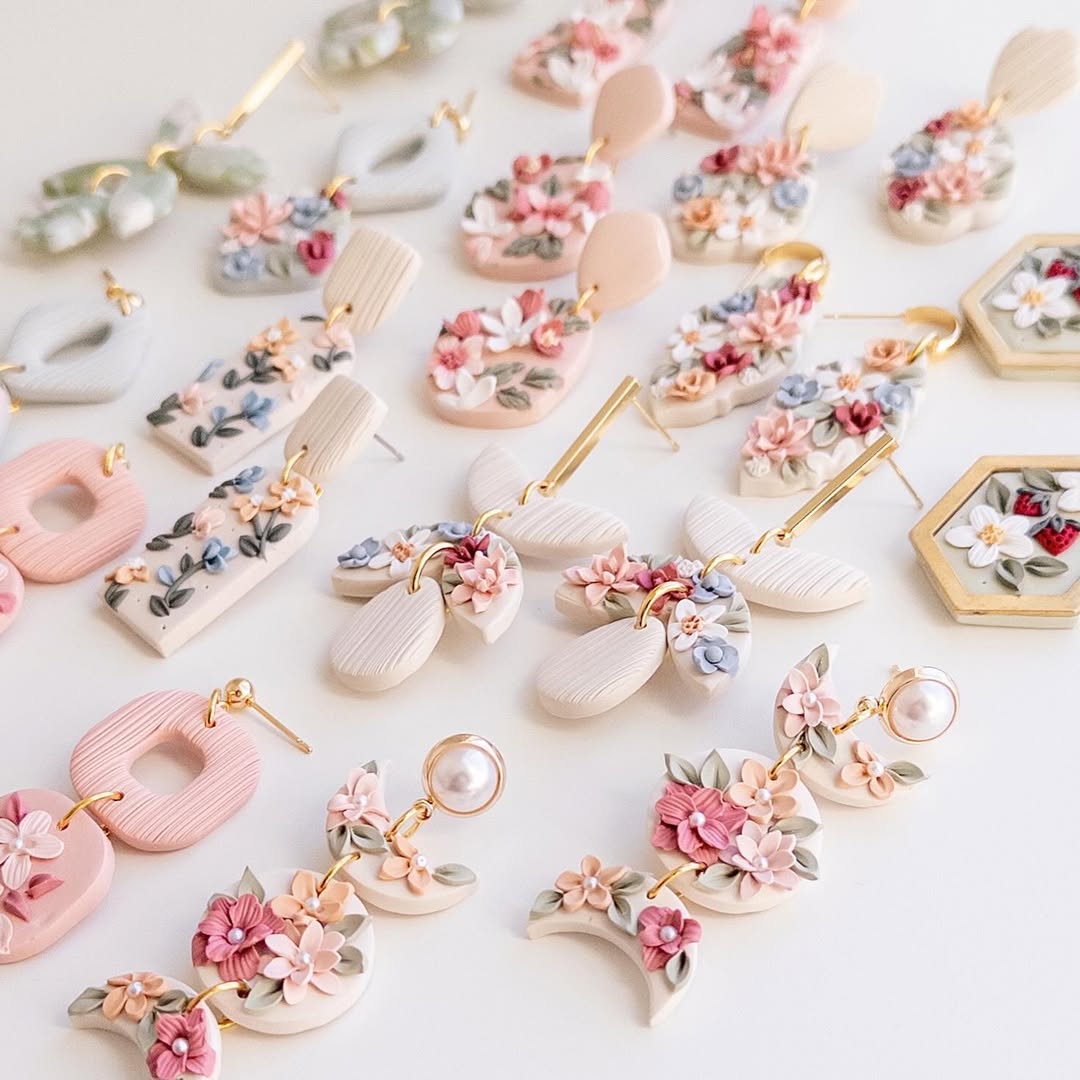 Some popular trends include terrazzo patterns, celestial motifs, fruit-inspired pieces, and elegant marbling. Clay earrings can be designed for everyday wear or themed for holidays, weddings, or statement fashion looks. With tools like cutters, rollers, molds, and a bit of creativity, the design possibilities are endless. Add metallic leaf, stamped textures, or embedded beads for a unique touch.