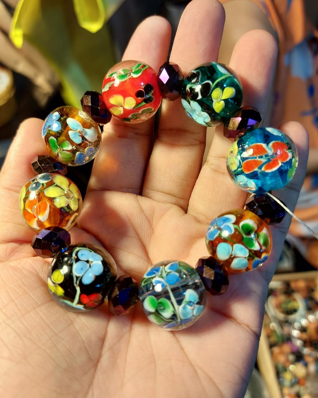 - Lampwork floral bead bracelet
