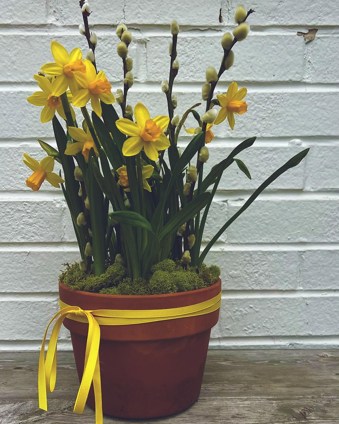 - Potted daffodils by the door