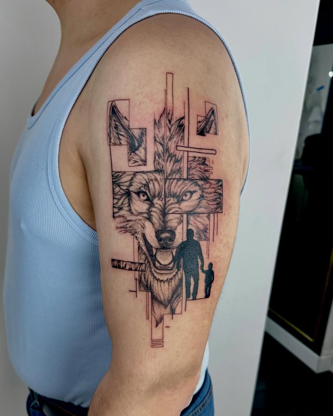 3. Geometric wolf on the shoulder