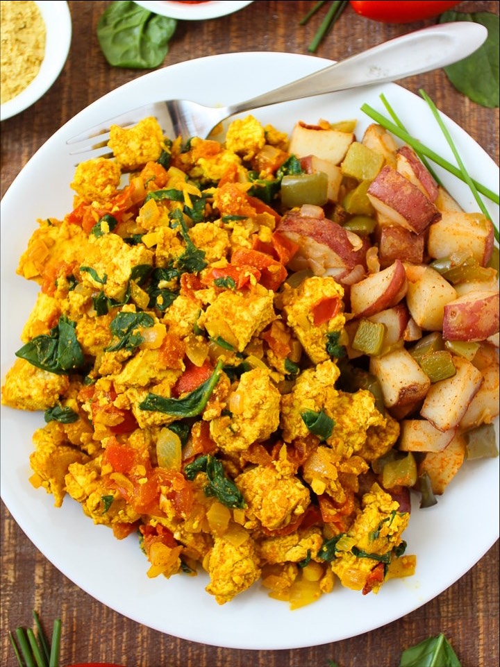 - Vegan tofu and veggie breakfast scramble